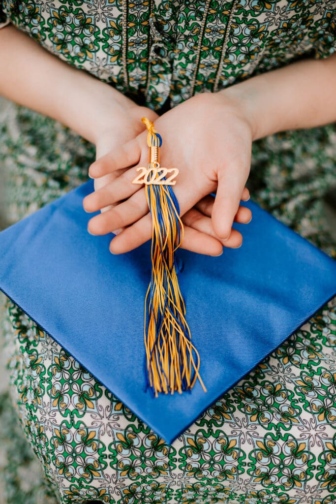 Tell a story. Take lots of angles and lots of different shots to tell the story of this special day. Things such as close ups of the cap and tassel, your senior’s hands holding their diploma, smiling at the camera shots and more! Capture candid graduation photos throughout the entire day such as getting ready, to putting on the gown, to walking across the stage and more. If you want to put these in an album it will tell the story of the entire day.